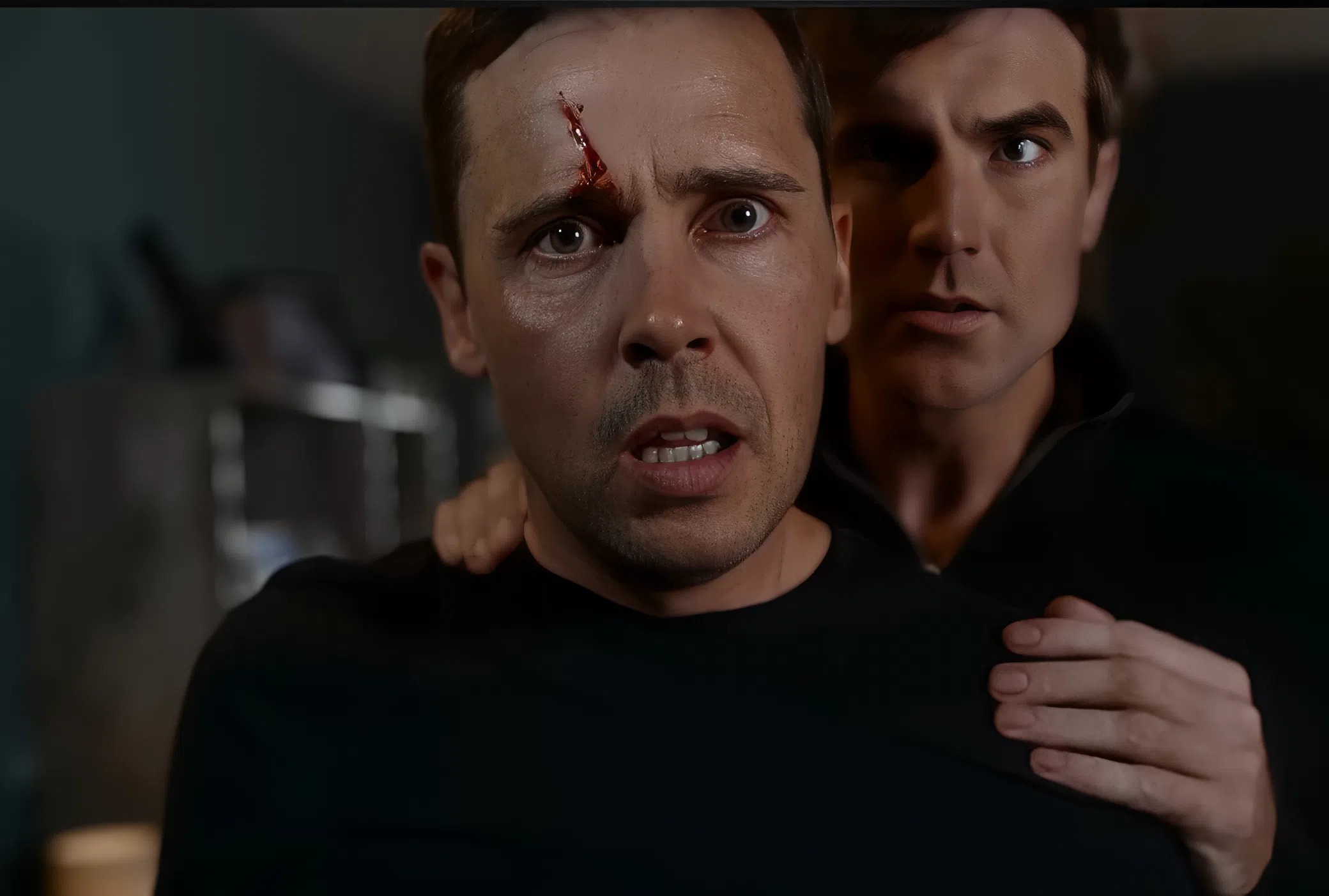 Todd lies on the floor, shaken and hurt. Theo towers over him, breathless and furious. His posture gives away everything Todd has been too afraid to say. Summer stands behind Billy, horrified by the scene unfolding just feet away.
