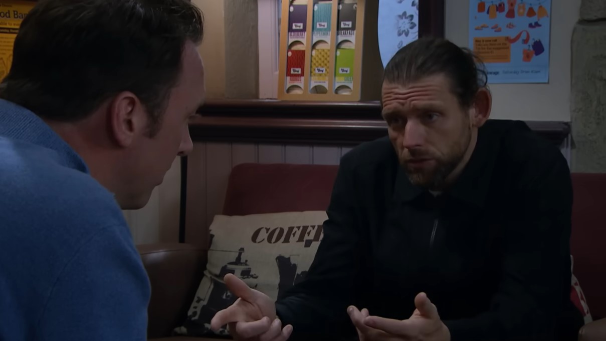 After weeks of quiet tension, Robert (Ryan Hawley) is ready to tell Aaron Dingle (Danny Miller) the truth about what really happened to him in prison. His confession is sparked by Kev’s revelation about a deadly altercation — a prisoner murdered by the notorious Jez, the man who made Robert’s life a living nightmare.