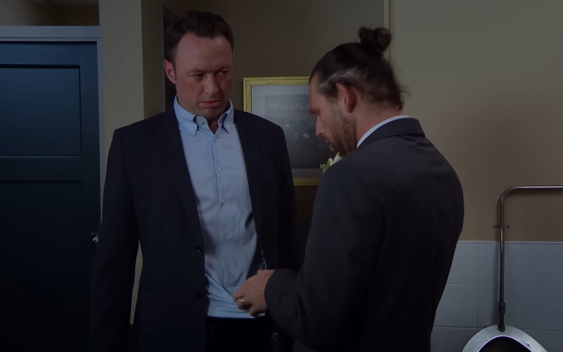 Moments before Robert could tell Kev the truth, Dr Liam Cavanagh (Jonny McPherson) arrived with devastating news: Kev had suffered another heart scare and was rushed to hospital. A shaken Kev later called Robert, insisting he’d recover in time to reach the church. Moved by pity, Robert agreed to go through with the ceremony.