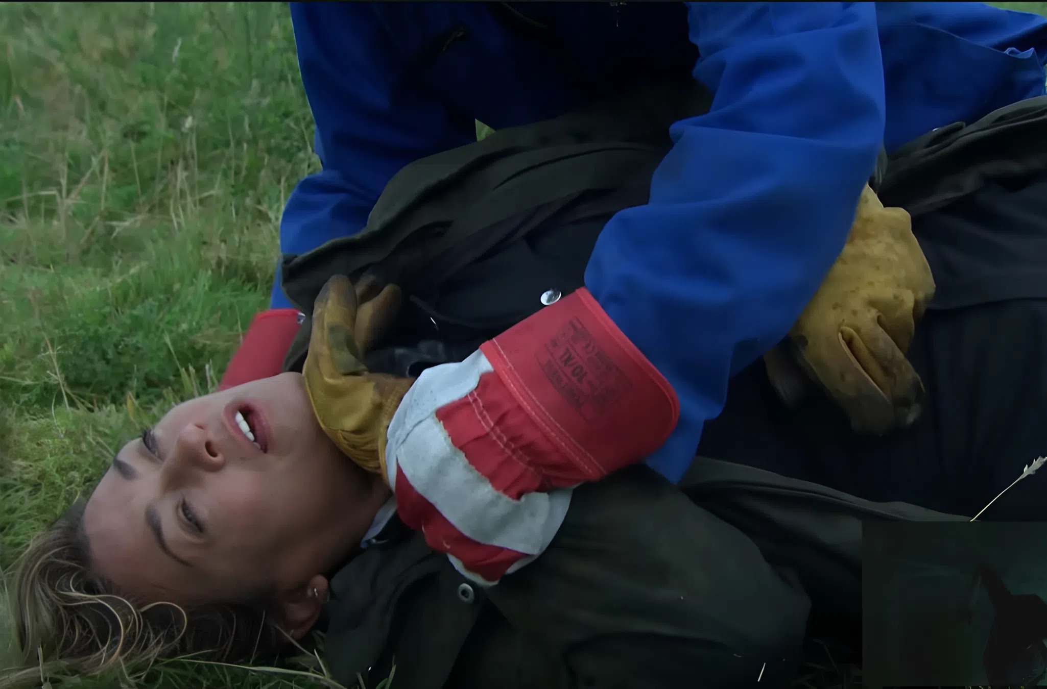 Later, as she tries to move heavy fence panels across a field, Moira suddenly becomes breathless and collapses to the ground.