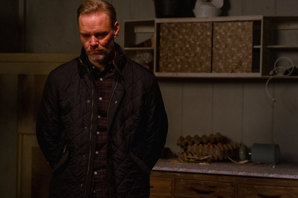 Following Celia’s murder, Ray stands over his dead mother’s body before grabbing his red sports bag and heading out of their farmhouse. Making his way to the village, he prepares to tell Laurel that they are finally free to be together.